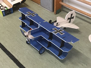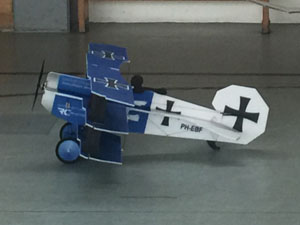 Fokker Triplane von Hacker mit ca. 250 g Abfluggewicht. Das enorm große