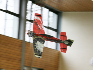 Der Fairness halber, es macht natürlich der Pilot und nicht das Modell, aber die Modelle geben es in einer kleinen Halle her - wenn man sich traut.