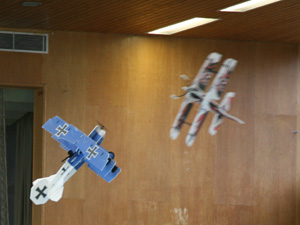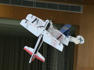 Im Bild die Fokker DR1 mit 890 mm Spannweite, die Mini MXS-C mit 600 mm Spannweite und die Extra 300 mit 880 mm Spannweite.