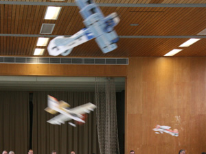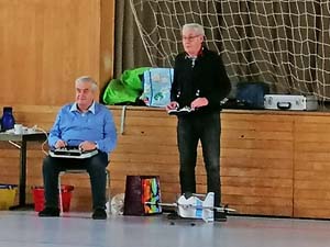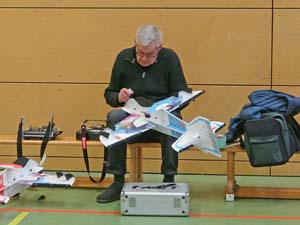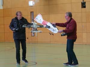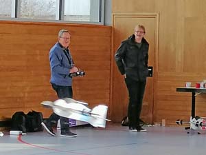 Natürlich auch Vapoors und unser Junior bekam für treue Teilnahme am Hallenfliegen eine Crack Yak. Und dann natürlich das federleichte Modell von Richard, um das ihn alle ein wenig beneiden, aber der Bauaufwand.