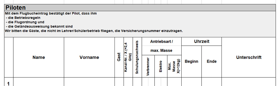 Da unterschreibt man jetzt mit der Eintragung eine kleine Erklärung, dass man geschult ist und gibt an, dass man einen Kenntnisnachweis besitzt. Eine Kontrollpflicht durch den Flugleiter besteht dabei nicht! Die kritische Masse hat sich jetzt auf 12kg verschoben, aber das ist ja bekannt und wer die schweren Modelle fliegt, macht dann dort ein X. Aber bei 25kg ist Schluss!