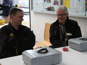 Wir bekamen einen Tisch mit Stromanschluss, so komfortabel haben wir es selten ! Jeder Pilot füllte eine Anmeldung aus, so kommt der Verein zu Gästedaten. Dass wir dabei auch noch die Telefonnummer angeben mussten, erwies sich später noch als Glücksumstand.