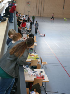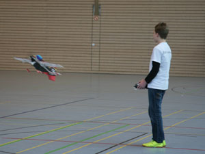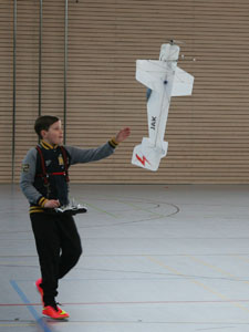 Am Sonnabend war bis 20 Uhr freies Fliegen, selbiges am Sonntag bis Mittag und dann ab 13.00 Uhr Schaufliegen . Da die Halle über eine Tribüne verfügt, war letzteres für die Zuschauer sehr attraktiv.