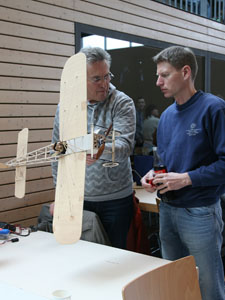 Geflogen wurde die ganze Breite des Hallenfluges. Sehr viel Scale, überwiegend von Horizon und Kollegen, aber auch interessante Eigenbauten. Dann natürlich große und leichte Indoormodelle, fast vollständig ausgehöhlt und nur mit einer hauchdünnen Folie bespannt erreichen Sie ein Abfluggewicht von ca. 120 g was ein Fliegen fast in Zeitlupe ermöglicht.