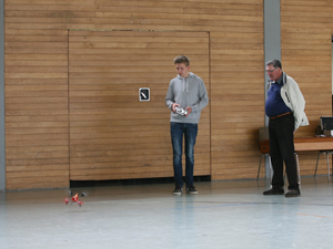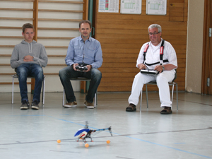 Zwischenzeitlich wurde mal im Lehrer - Schülerbetrieb Hubschrauber geflogen, auch das geht in der Halle tadellos. Am Morgen hatte Angelika den Schlüssel zur Halle erhalten, so dass die Nutzung nun problemlos möglich ist.